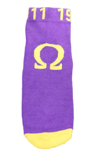 These Omega Psi Phi Athletic Dry Fit Ankle Socks are a must-have. Designed with the founding year, the letter omega, and the acronym FIETTS, these socks offer both style and functionality. The perfect addition to your athletic wear, these socks keep your feet comfortable and dry during any workout.